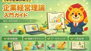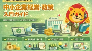 中小企業診断士一次試験「中小企業経営・中小企業政策」の全体像、頻出論点、得点戦略、学習順序、勉強時間、勉強法を独学向けに体系整理。暗記×本質理解で60~70点を狙う入門ガイド。